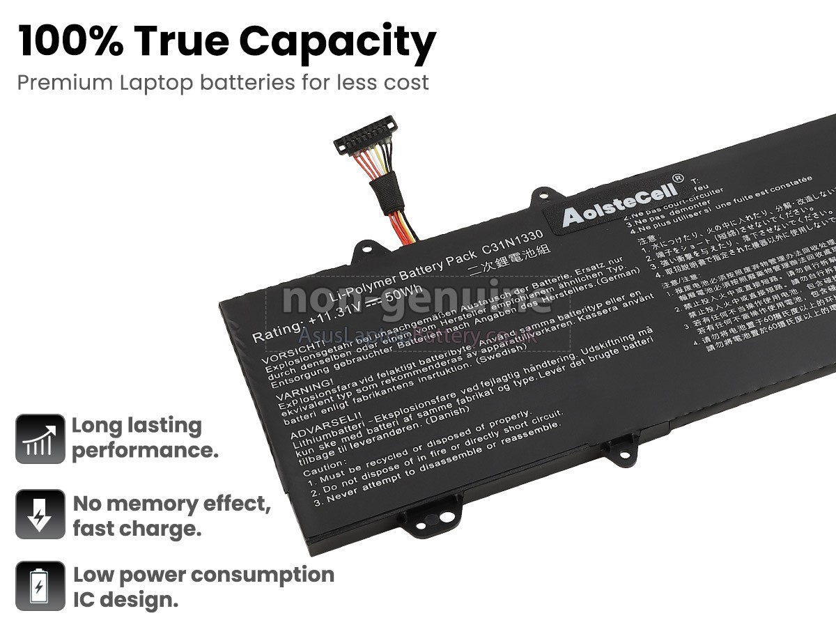This brand-new replacement battery for Asus 0B200-00070200 laptop is made from premium Li-Polymer batteries from Samsung, LG, and Panasonic to ensure optimal performance. This replacement Asus 0B200-00070200 battery pack has been specially designed with multiple protection circuits to ensure maximum safety. The battery pack's casing is made of non-flammable and highly durable plastic that is flame retardant to prevent damage when dropped from a low height.
