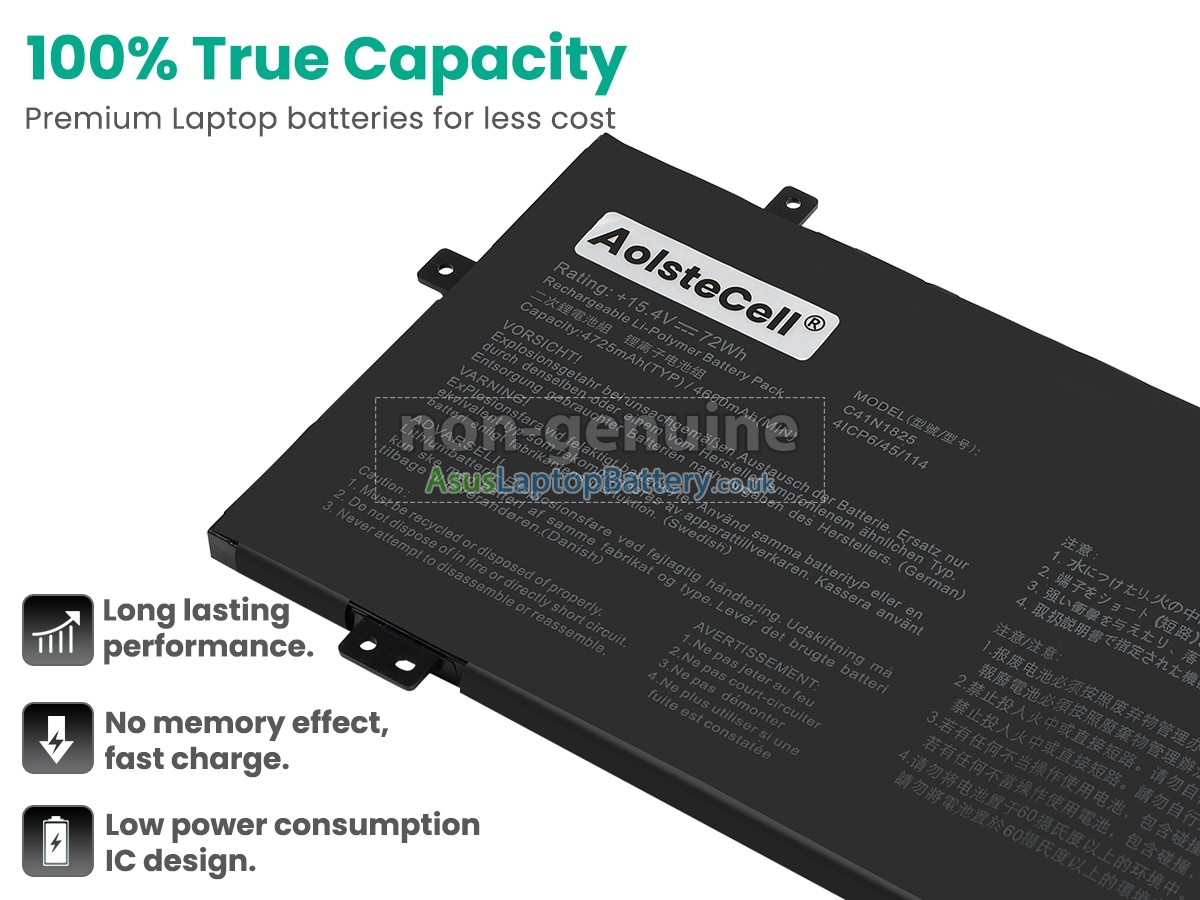 This brand-new replacement battery for Asus 0B200-03250000 laptop is made from premium Li-Polymer batteries from Samsung, LG, and Panasonic to ensure optimal performance. This replacement Asus 0B200-03250000 battery pack has been specially designed with multiple protection circuits to ensure maximum safety. The battery pack's casing is made of non-flammable and highly durable plastic that is flame retardant to prevent damage when dropped from a low height.