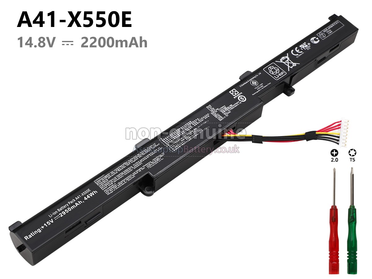 Thank you for purchasing this high-quality replacement Asus A41-X550E notebook battery from Asuslaptopbattery.co.uk. We have a rigorous testing process to ensure that the products you ordered (like this battery for Asus A41-X550E laptop) function correctly before they are packaged and shipped to you. Before placing your order, please make sure that your old original battery's part number is listed below and that it is the same shape as our battery image (please see the larger image for details).