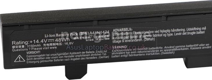 Thank you for purchasing this high-quality replacement Asus A41N1424 notebook battery from Asuslaptopbattery.co.uk. We have a rigorous testing process to ensure that the products you ordered (like this battery for Asus A41N1424 laptop) function correctly before they are packaged and shipped to you. Before placing your order, please make sure that your old original battery's part number is listed below and that it is the same shape as our battery image (please see the larger image for details).