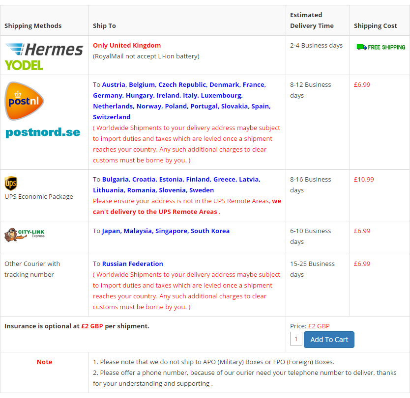 If you have a problem with one battery which bought from us, please contact us first. We will process your request and try to find a solution for your problem. If the problem cannot be fixed by our technical support engineer, we will generate an RMA number (Return Material Authorization) for you. If inspection concludes that the returned battery is defective, a new battery will be shipped out without extra charge.