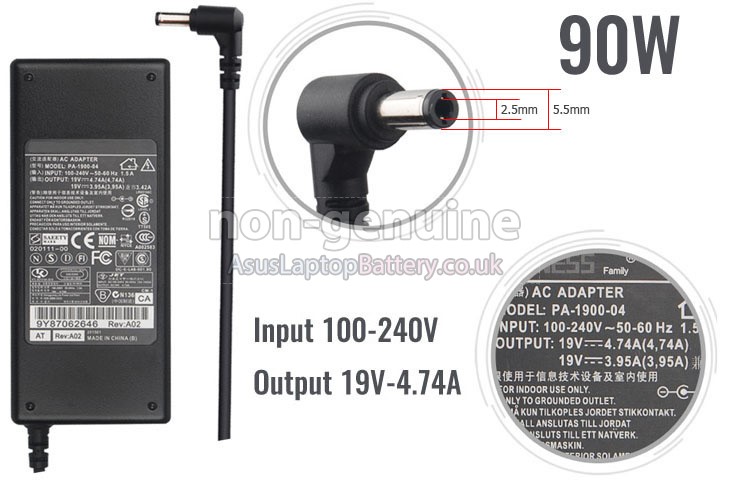 Replacement 19V 4.74A 90W AC Adapter for Asus Laptops Charger Power Cord