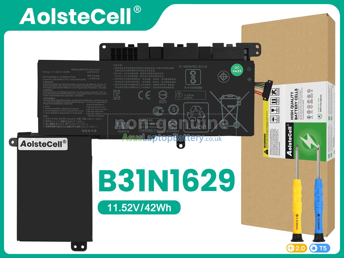 Thank you for purchasing this high-quality replacement Asus B31N1629 notebook battery from Asuslaptopbattery.co.uk. We have a rigorous testing process to ensure that the products you ordered (like this battery for Asus B31N1629 laptop) function correctly before they are packaged and shipped to you. Before placing your order, please make sure that your old original battery's part number is listed below and that it is the same shape as our battery image (please see the larger image for details).