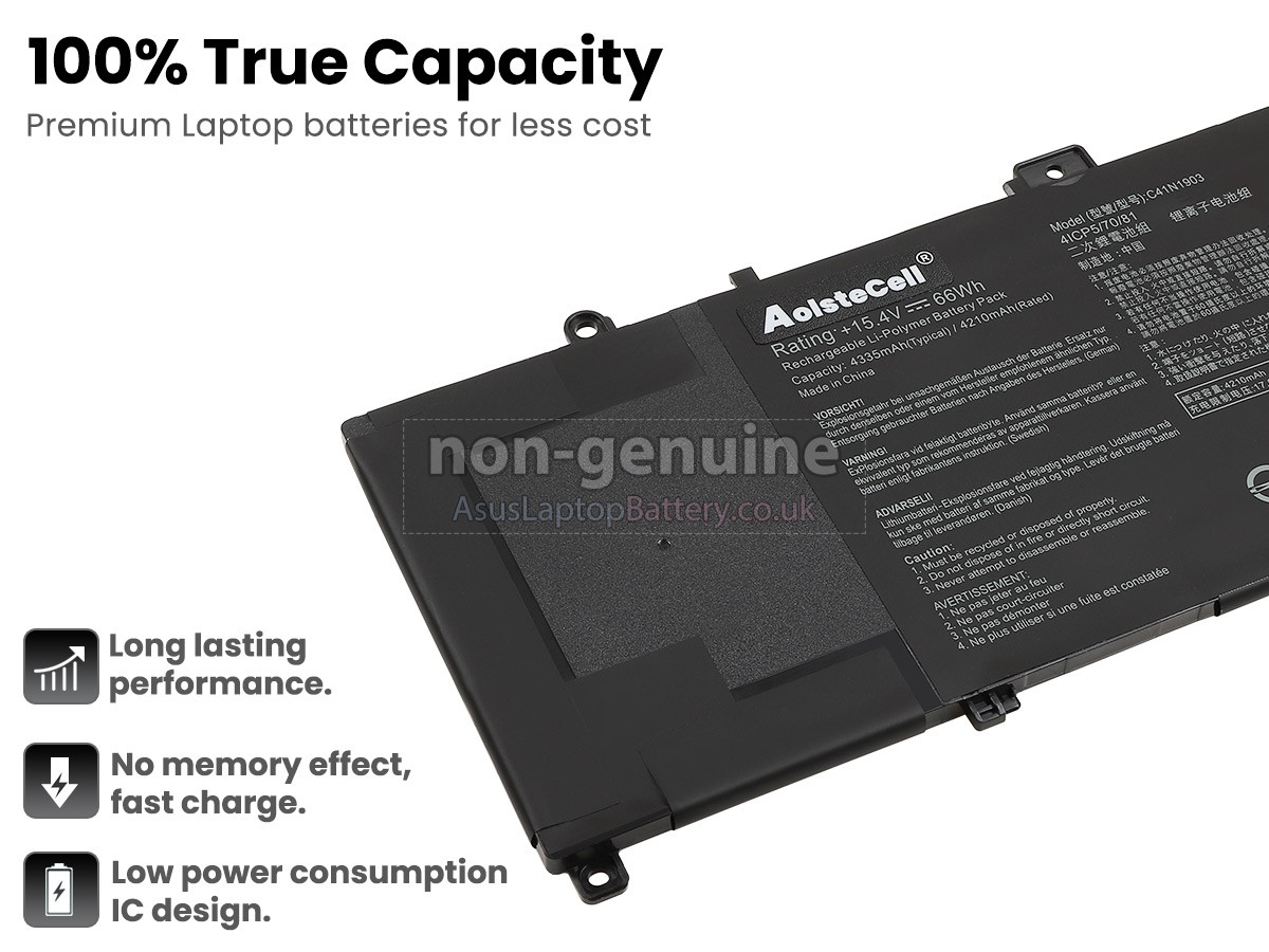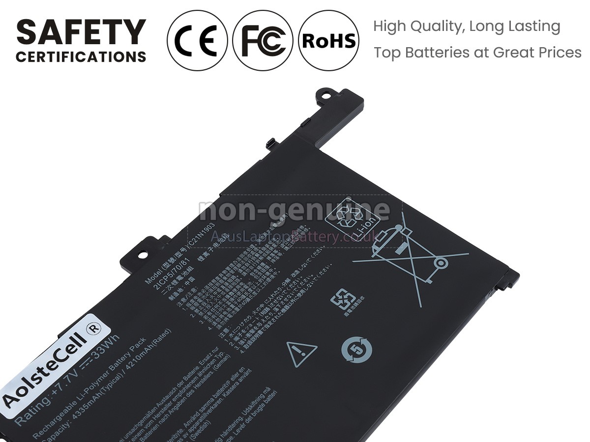 This brand-new replacement battery for Asus B3302CEA laptop is made from premium Li-Polymer batteries from Samsung, LG, and Panasonic to ensure optimal performance. This replacement Asus B3302CEA battery pack has been specially designed with multiple protection circuits to ensure maximum safety. The battery pack's casing is made of non-flammable and highly durable plastic that is flame retardant to prevent damage when dropped from a low height.
