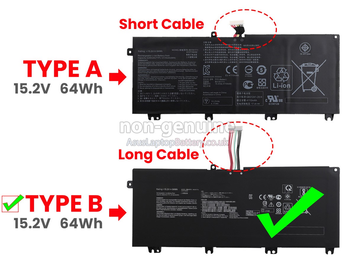 Thank you for purchasing this high-quality replacement Asus B41N1711 notebook battery from Asuslaptopbattery.co.uk. We have a rigorous testing process to ensure that the products you ordered (like this battery for Asus B41N1711 laptop) function correctly before they are packaged and shipped to you. Before placing your order, please make sure that your old original battery's part number is listed below and that it is the same shape as our battery image (please see the larger image for details).