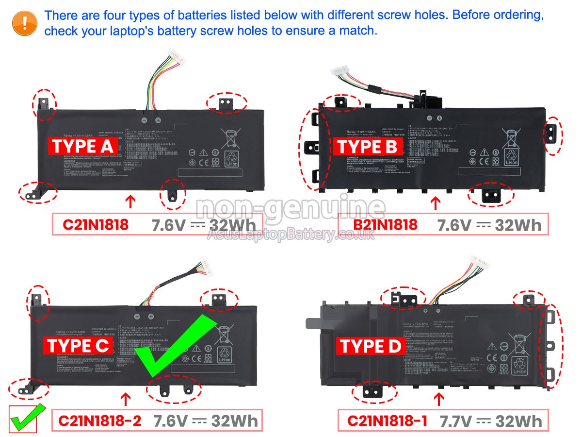There are 2 types battery, before placing an order please ensure your old battery model name is [C21N1818], not [C21N1818-1] or [C21N1818-2]. - SKUASG6760