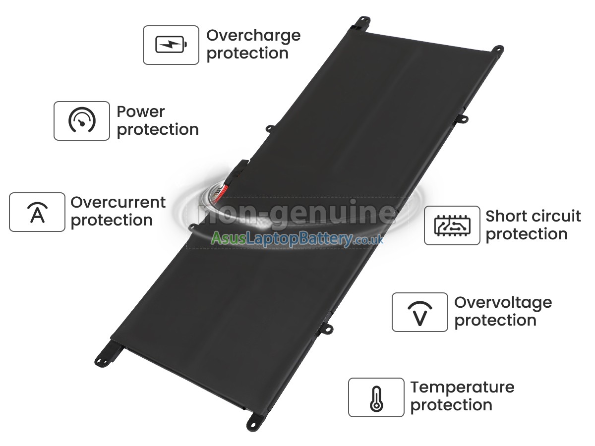 This brand-new replacement battery for Asus C22N2206 laptop is made from premium Li-Polymer batteries from Samsung, LG, and Panasonic to ensure optimal performance. This replacement Asus C22N2206 battery pack has been specially designed with multiple protection circuits to ensure maximum safety. The battery pack's casing is made of non-flammable and highly durable plastic that is flame retardant to prevent damage when dropped from a low height.