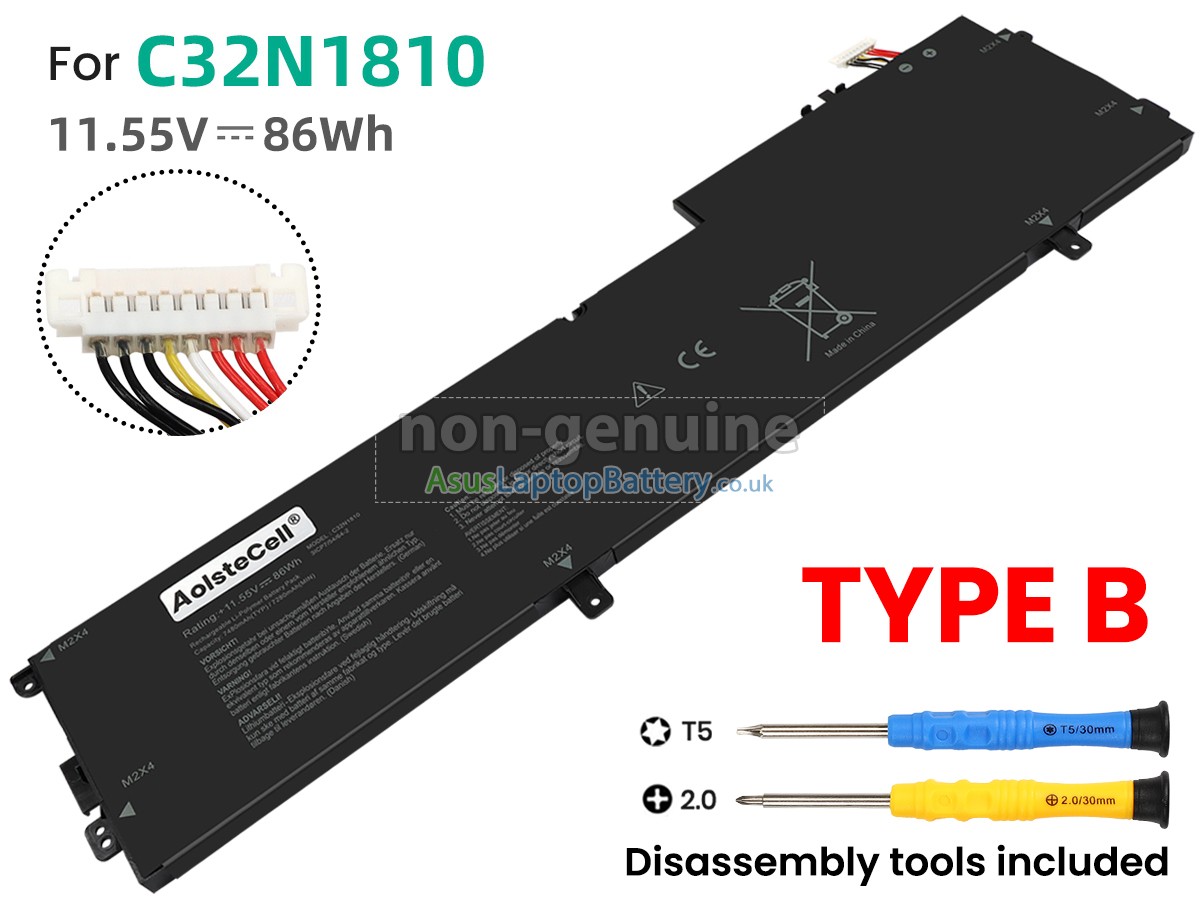 Thank you for purchasing this high-quality replacement Asus C32N1810 notebook battery from Asuslaptopbattery.co.uk. We have a rigorous testing process to ensure that the products you ordered (like this battery for Asus C32N1810 laptop) function correctly before they are packaged and shipped to you. Before placing your order, please make sure that your old original battery's part number is listed below and that it is the same shape as our battery image (please see the larger image for details).