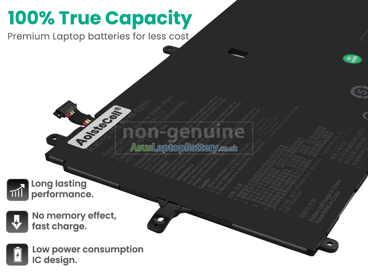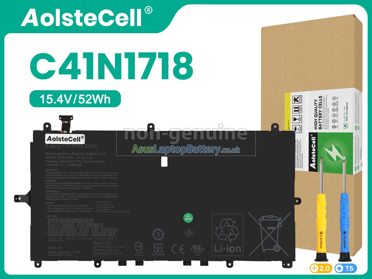 Thank you for purchasing this high-quality replacement Asus C41N1718 notebook battery from Asuslaptopbattery.co.uk. We have a rigorous testing process to ensure that the products you ordered (like this battery for Asus C41N1718 laptop) function correctly before they are packaged and shipped to you. Before placing your order, please make sure that your old original battery's part number is listed below and that it is the same shape as our battery image (please see the larger image for details).