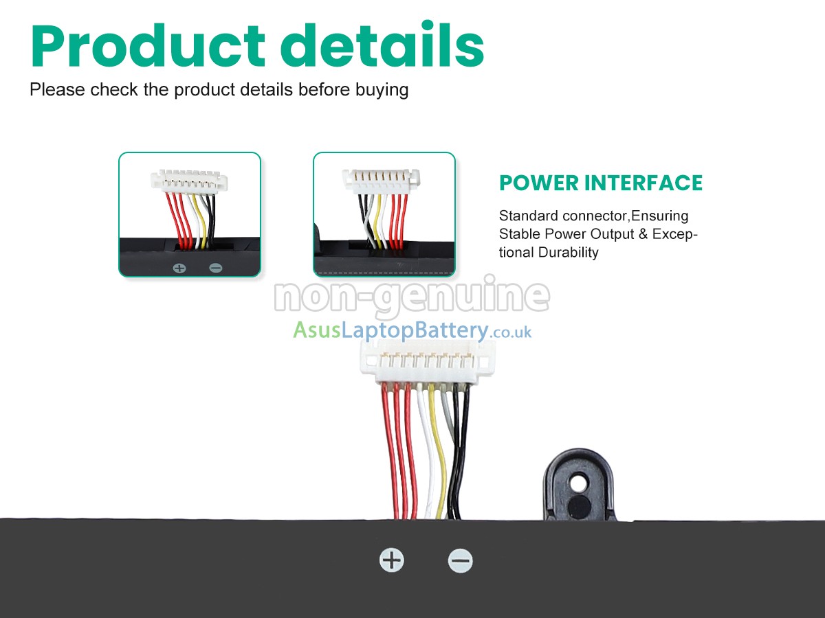 Thank you for purchasing this high-quality replacement Asus C41N2203 notebook battery from Asuslaptopbattery.co.uk. We have a rigorous testing process to ensure that the products you ordered (like this battery for Asus C41N2203 laptop) function correctly before they are packaged and shipped to you. Before placing your order, please make sure that your old original battery's part number is listed below and that it is the same shape as our battery image (please see the larger image for details).