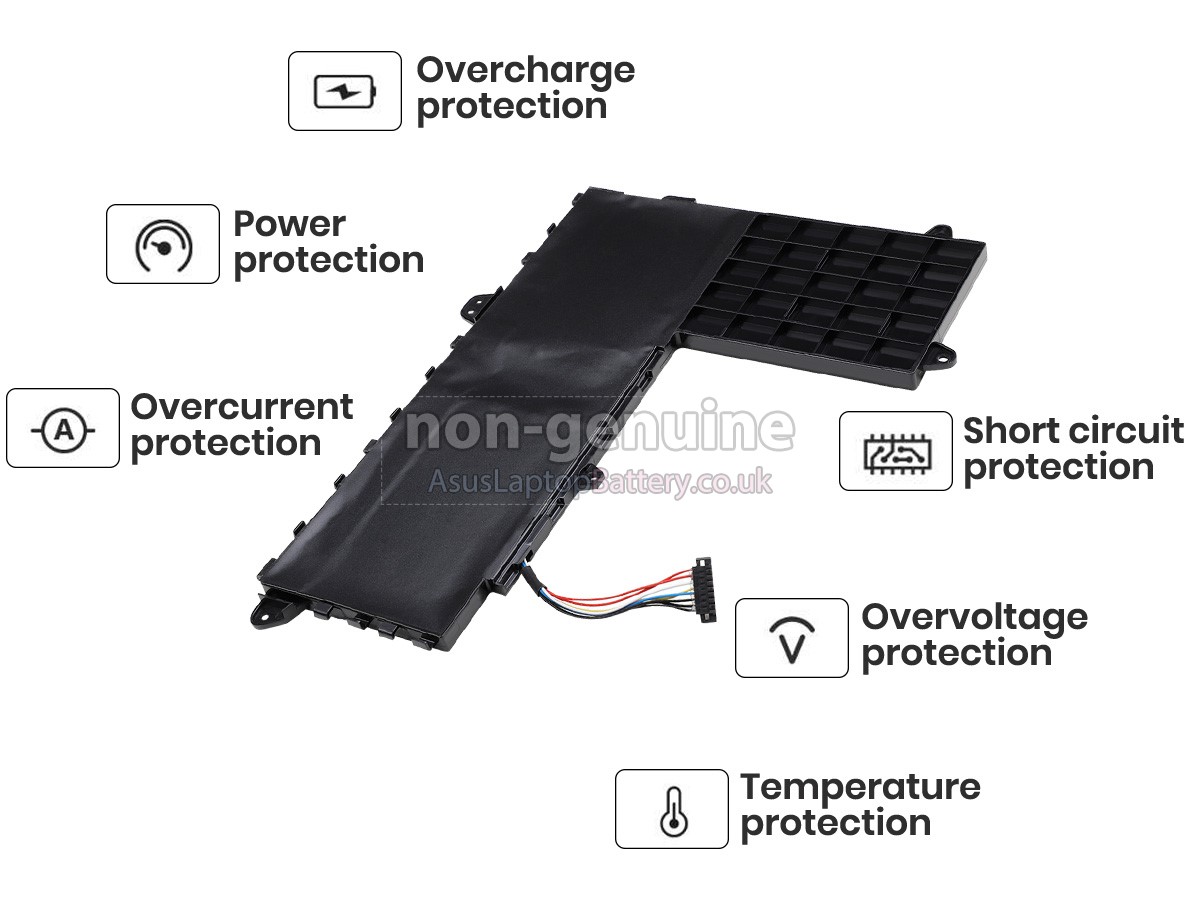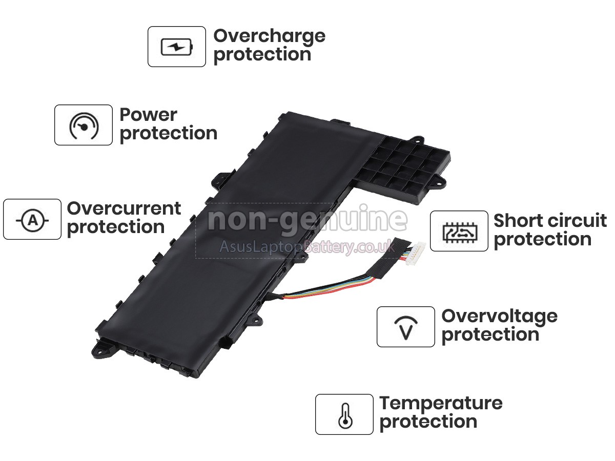 This brand-new replacement battery for Asus E402M laptop is made from premium Li-Polymer batteries from Samsung, LG, and Panasonic to ensure optimal performance. This replacement Asus E402M battery pack has been specially designed with multiple protection circuits to ensure maximum safety. The battery pack's casing is made of non-flammable and highly durable plastic that is flame retardant to prevent damage when dropped from a low height.