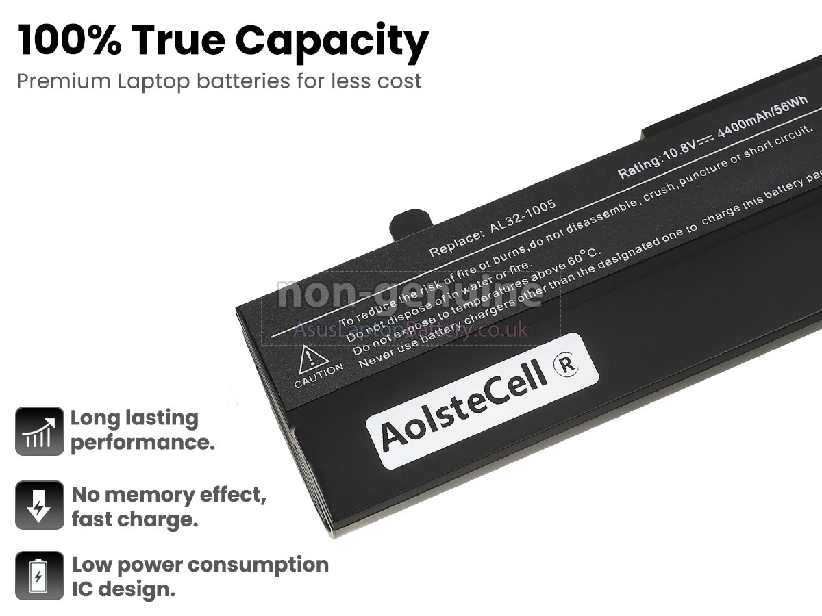 Thank you for purchasing this high-quality replacement Asus Eee PC R1001PX notebook battery from Asuslaptopbattery.co.uk. We have a rigorous testing process to ensure that the products you ordered (like this battery for Asus Eee PC R1001PX laptop) function correctly before they are packaged and shipped to you. Before placing your order, please make sure that your old original battery's part number is listed below and that it is the same shape as our battery image (please see the larger image for details).