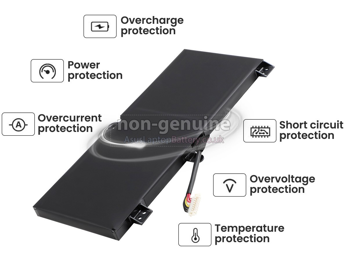 This brand-new replacement battery for Asus G515GW laptop is made from premium Li-Polymer batteries from Samsung, LG, and Panasonic to ensure optimal performance. This replacement Asus G515GW battery pack has been specially designed with multiple protection circuits to ensure maximum safety. The battery pack's casing is made of non-flammable and highly durable plastic that is flame retardant to prevent damage when dropped from a low height.