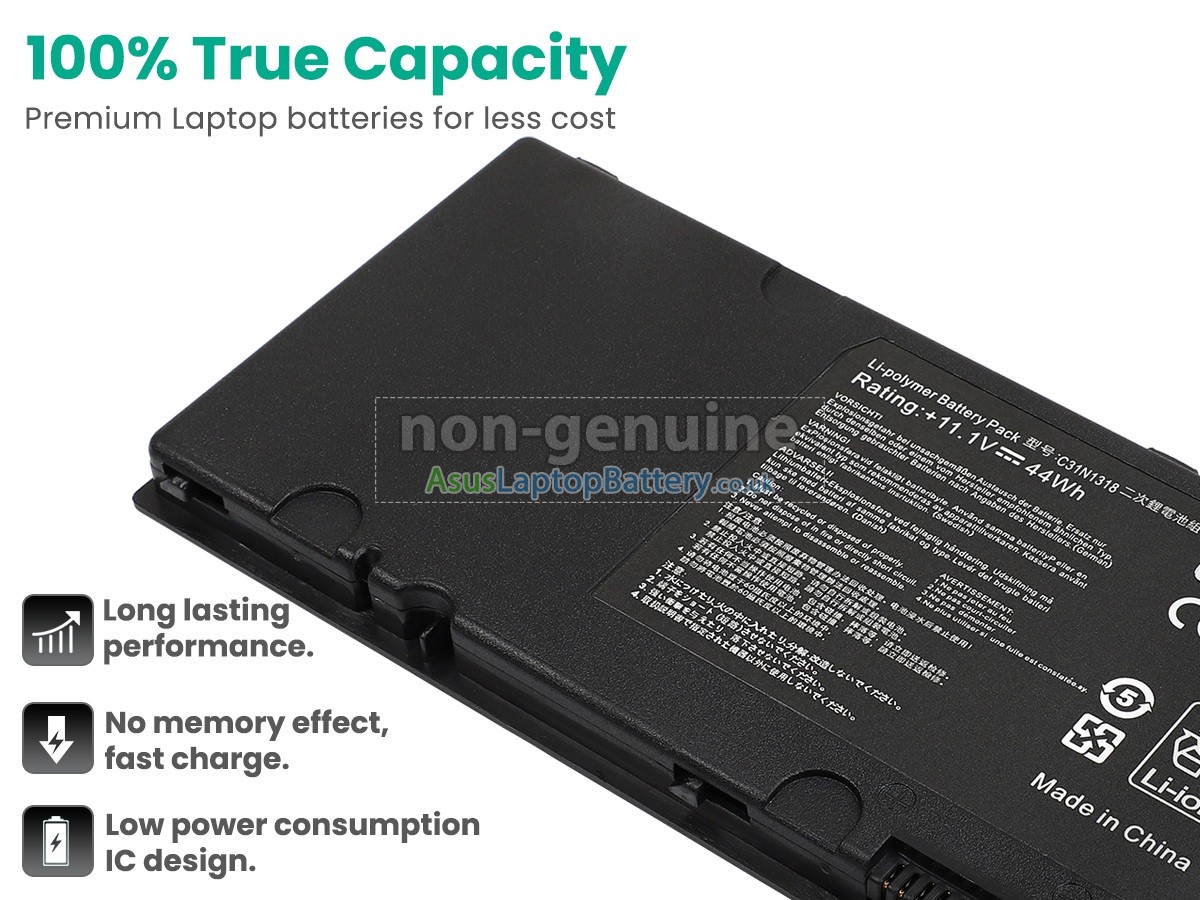 Thank you for purchasing this high-quality replacement Asus Pro ESSENTIAL PU301LA-RO123G notebook battery from Asuslaptopbattery.co.uk. We have a rigorous testing process to ensure that the products you ordered (like this battery for Asus Pro ESSENTIAL PU301LA-RO123G laptop) function correctly before they are packaged and shipped to you. Before placing your order, please make sure that your old original battery's part number is listed below and that it is the same shape as our battery image (please see the larger image for details).