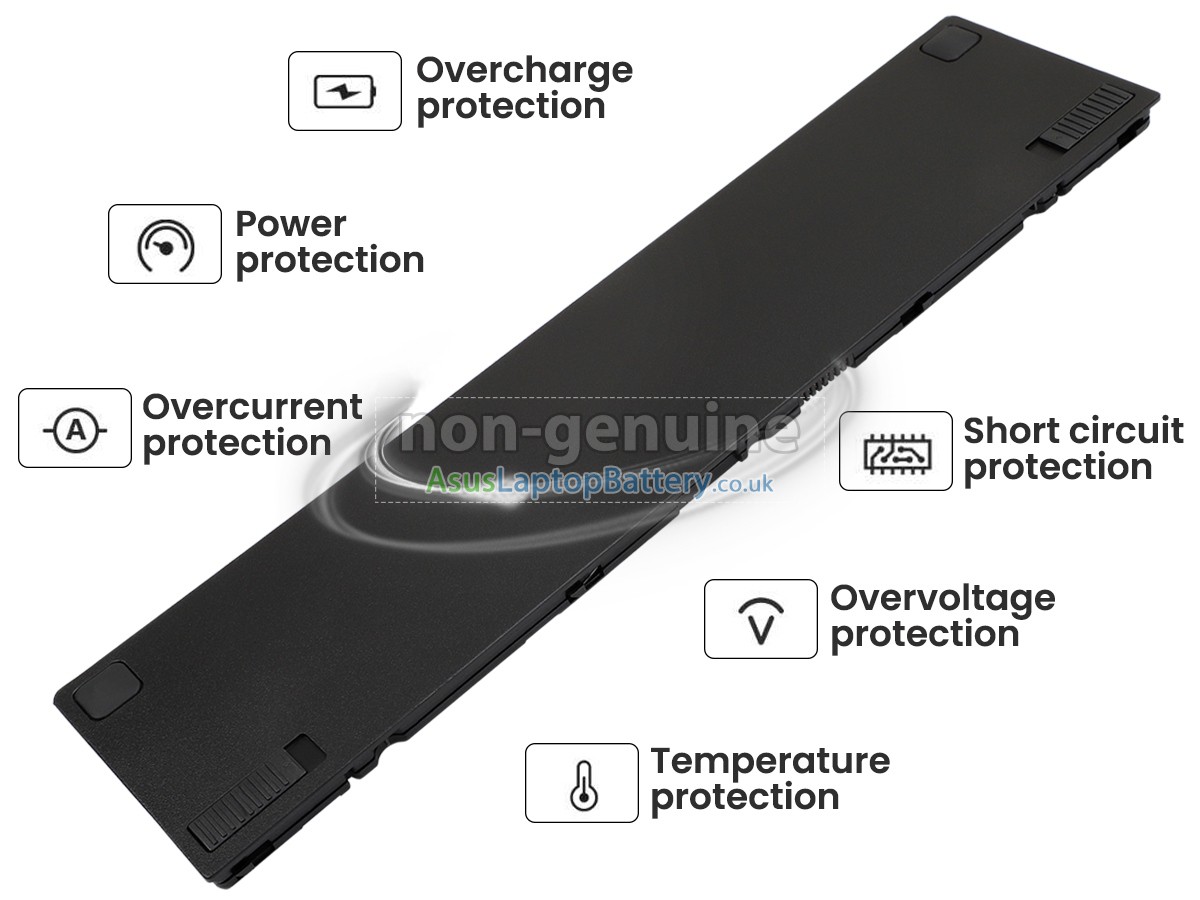 This brand-new replacement battery for Asus Pro ESSENTIAL PU301LA-RO123G laptop is made from premium Li-Polymer batteries from Samsung, LG, and Panasonic to ensure optimal performance. This replacement Asus Pro ESSENTIAL PU301LA-RO123G battery pack has been specially designed with multiple protection circuits to ensure maximum safety. The battery pack's casing is made of non-flammable and highly durable plastic that is flame retardant to prevent damage when dropped from a low height.