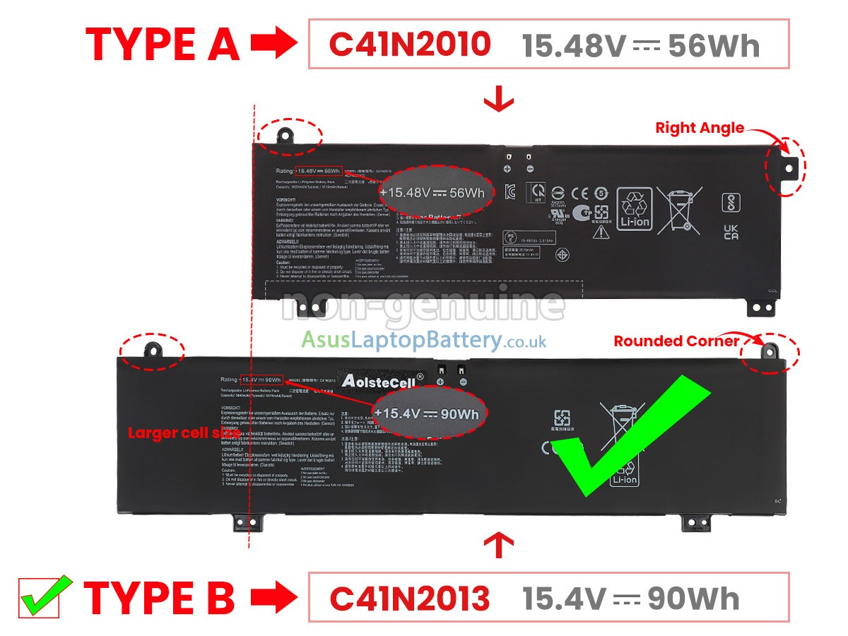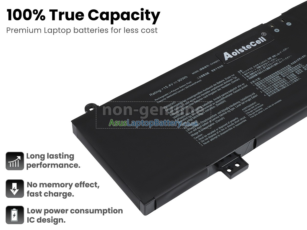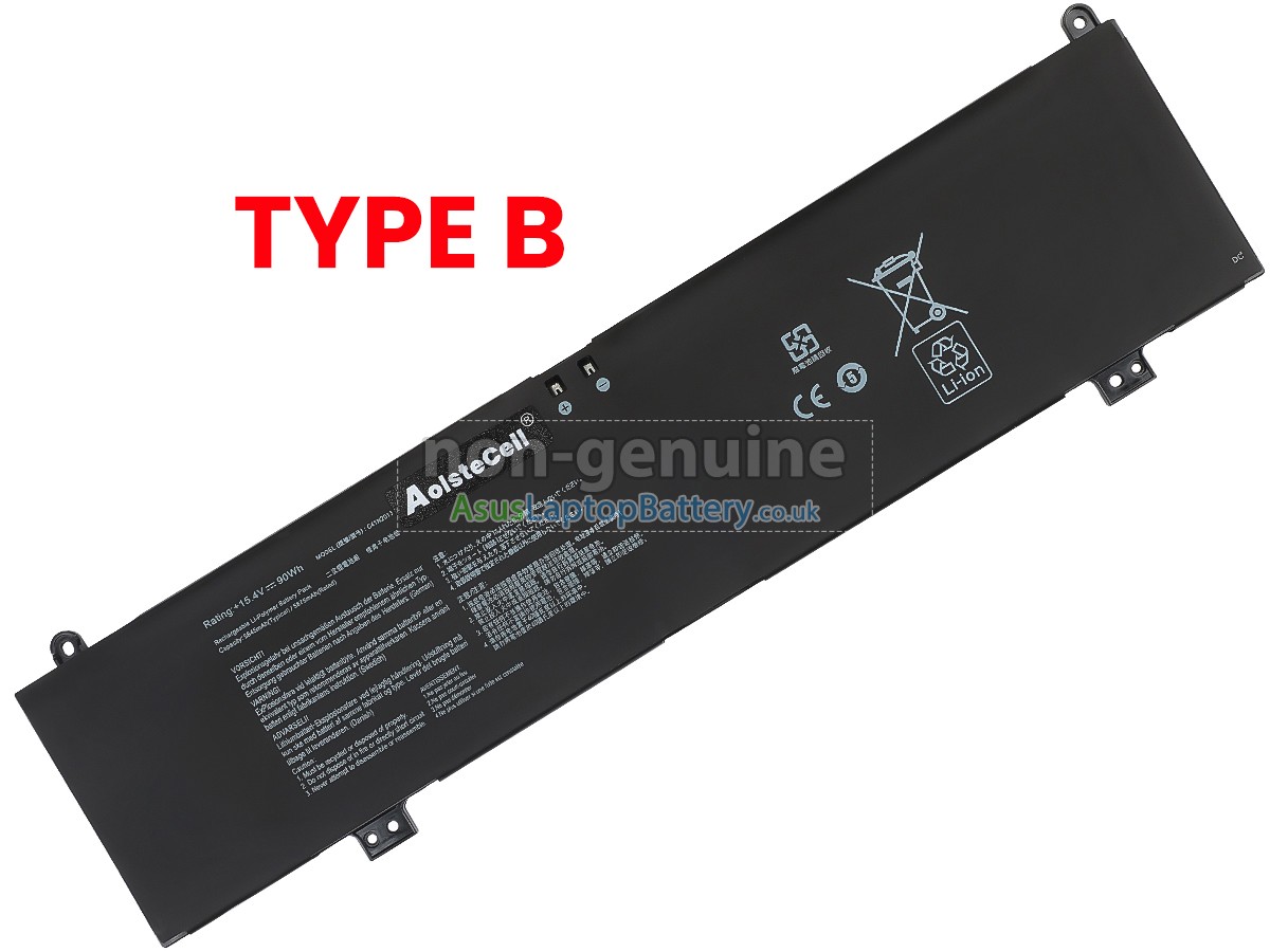 Thank you for purchasing this high-quality replacement Asus ProART STUDIOBook 16 OLED H7600HM-XB76 notebook battery from Asuslaptopbattery.co.uk. We have a rigorous testing process to ensure that the products you ordered (like this battery for Asus ProART STUDIOBook 16 OLED H7600HM-XB76 laptop) function correctly before they are packaged and shipped to you. Before placing your order, please make sure that your old original battery's part number is listed below and that it is the same shape as our battery image (please see the larger image for details).