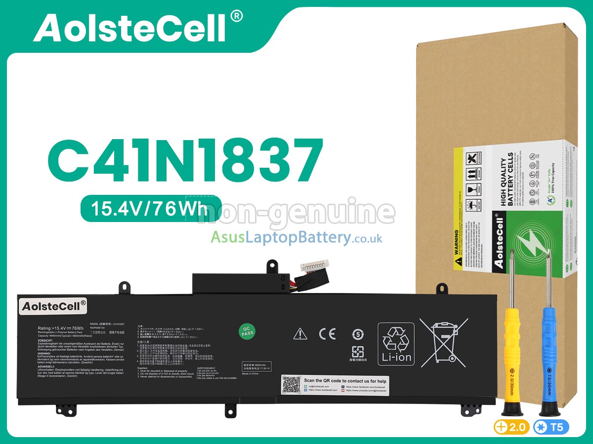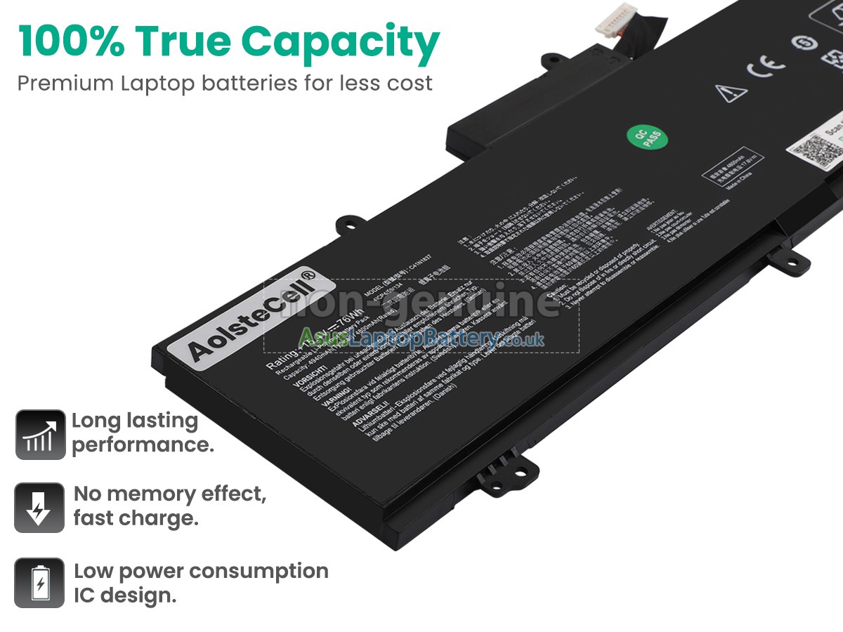 This brand-new replacement battery for Asus ProART STUDIOBook Pro 15 W500G5T-XS77 laptop is made from premium Li-Polymer batteries from Samsung, LG, and Panasonic to ensure optimal performance. This replacement Asus ProART STUDIOBook Pro 15 W500G5T-XS77 battery pack has been specially designed with multiple protection circuits to ensure maximum safety. The battery pack's casing is made of non-flammable and highly durable plastic that is flame retardant to prevent damage when dropped from a low height.