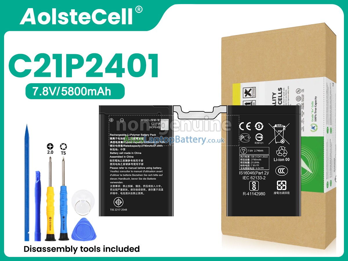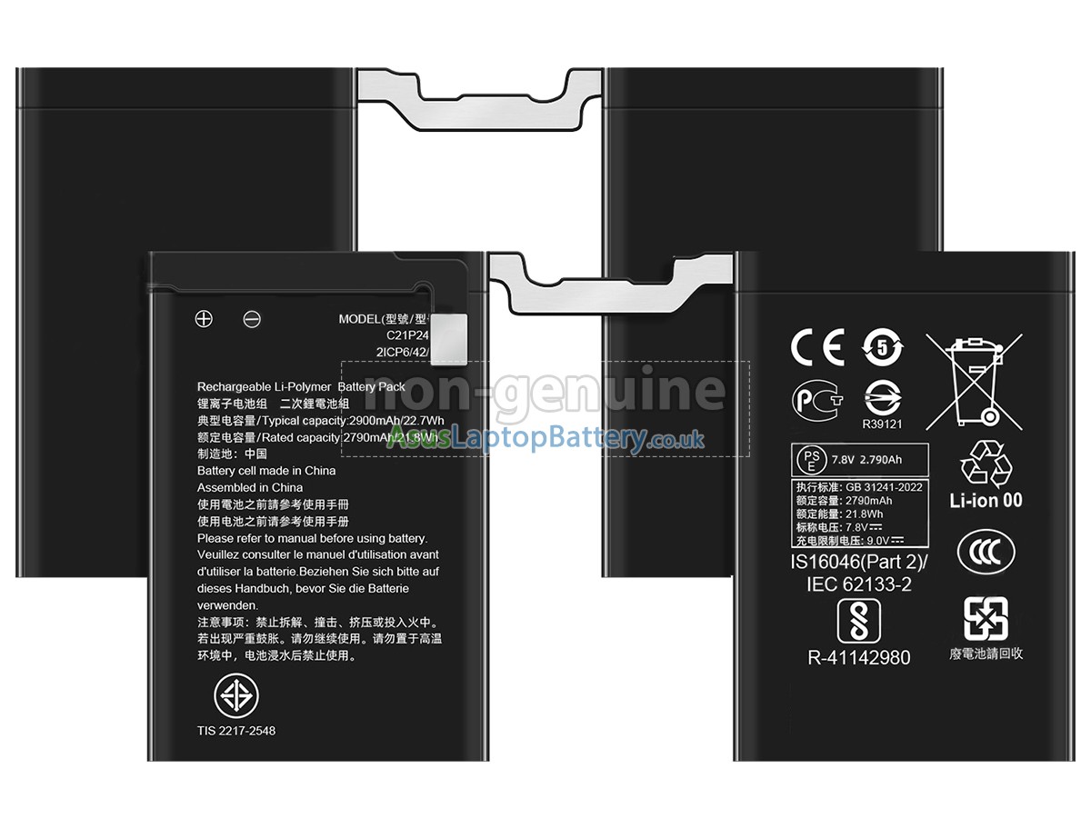Thank you for purchasing this high-quality replacement Asus ROG PHONE 9 notebook battery from Asuslaptopbattery.co.uk. We have a rigorous testing process to ensure that the products you ordered (like this battery for Asus ROG PHONE 9 laptop) function correctly before they are packaged and shipped to you. Before placing your order, please make sure that your old original battery's part number is listed below and that it is the same shape as our battery image (please see the larger image for details).