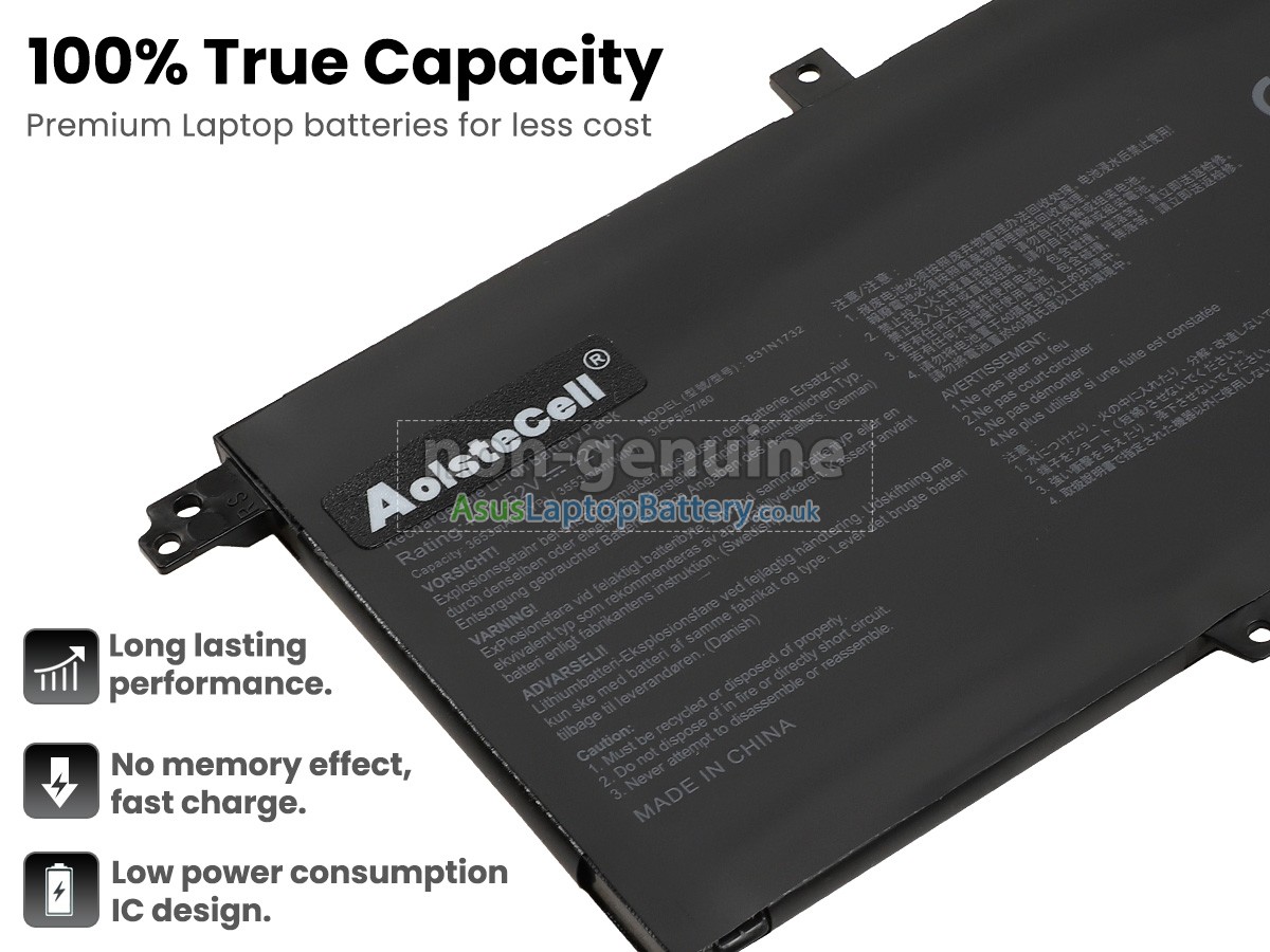 Thank you for purchasing this high-quality replacement Asus RX571GT notebook battery from Asuslaptopbattery.co.uk. We have a rigorous testing process to ensure that the products you ordered (like this battery for Asus RX571GT laptop) function correctly before they are packaged and shipped to you. Before placing your order, please make sure that your old original battery's part number is listed below and that it is the same shape as our battery image (please see the larger image for details).