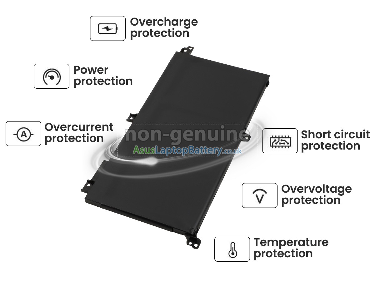 This brand-new replacement battery for Asus RX571GT laptop is made from premium Li-Polymer batteries from Samsung, LG, and Panasonic to ensure optimal performance. This replacement Asus RX571GT battery pack has been specially designed with multiple protection circuits to ensure maximum safety. The battery pack's casing is made of non-flammable and highly durable plastic that is flame retardant to prevent damage when dropped from a low height.