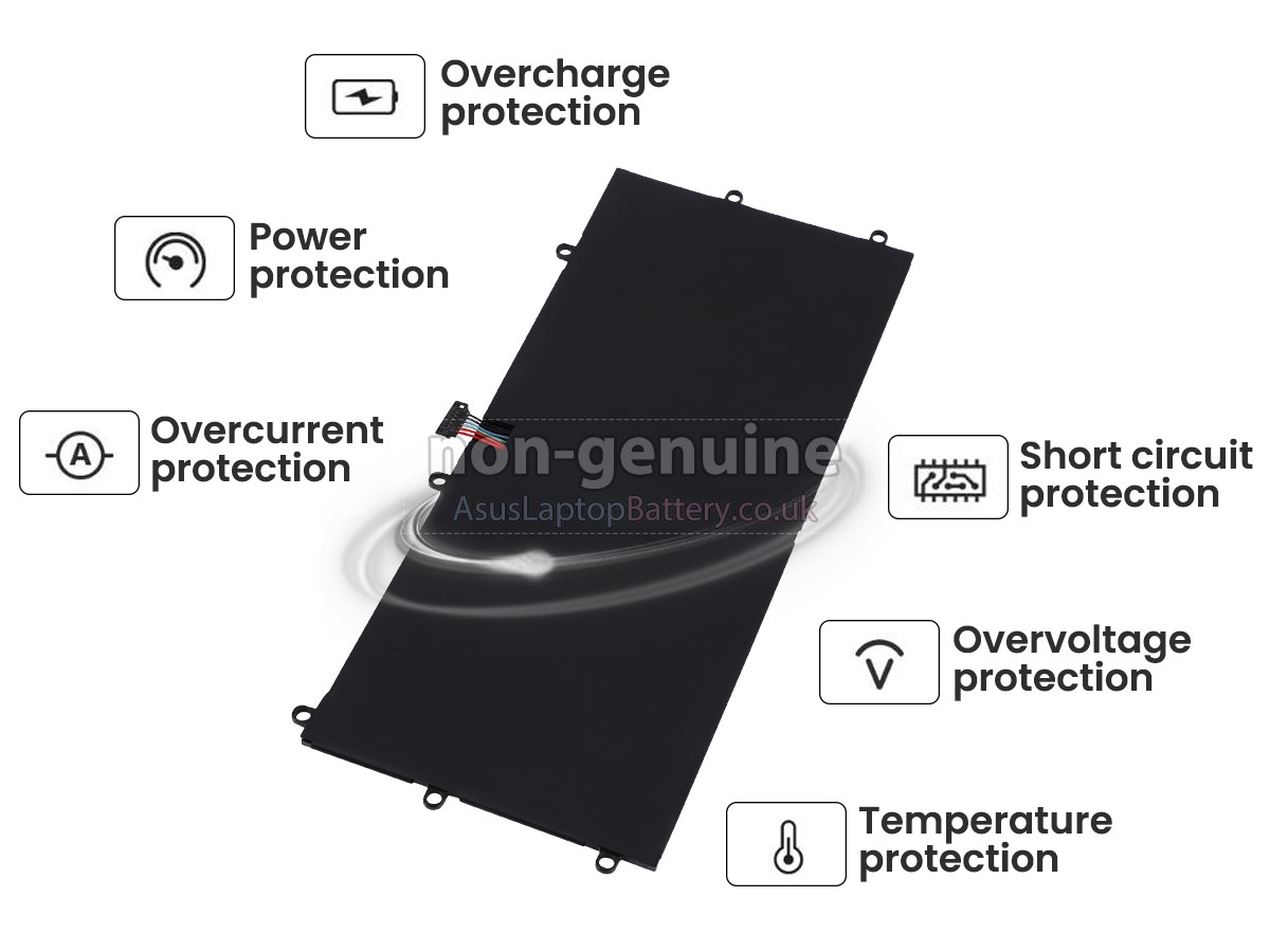 This brand-new replacement battery for Asus Transformer Book T100CHI-FG007B laptop is made from premium Li-Polymer batteries from Samsung, LG, and Panasonic to ensure optimal performance. This replacement Asus Transformer Book T100CHI-FG007B battery pack has been specially designed with multiple protection circuits to ensure maximum safety. The battery pack's casing is made of non-flammable and highly durable plastic that is flame retardant to prevent damage when dropped from a low height.