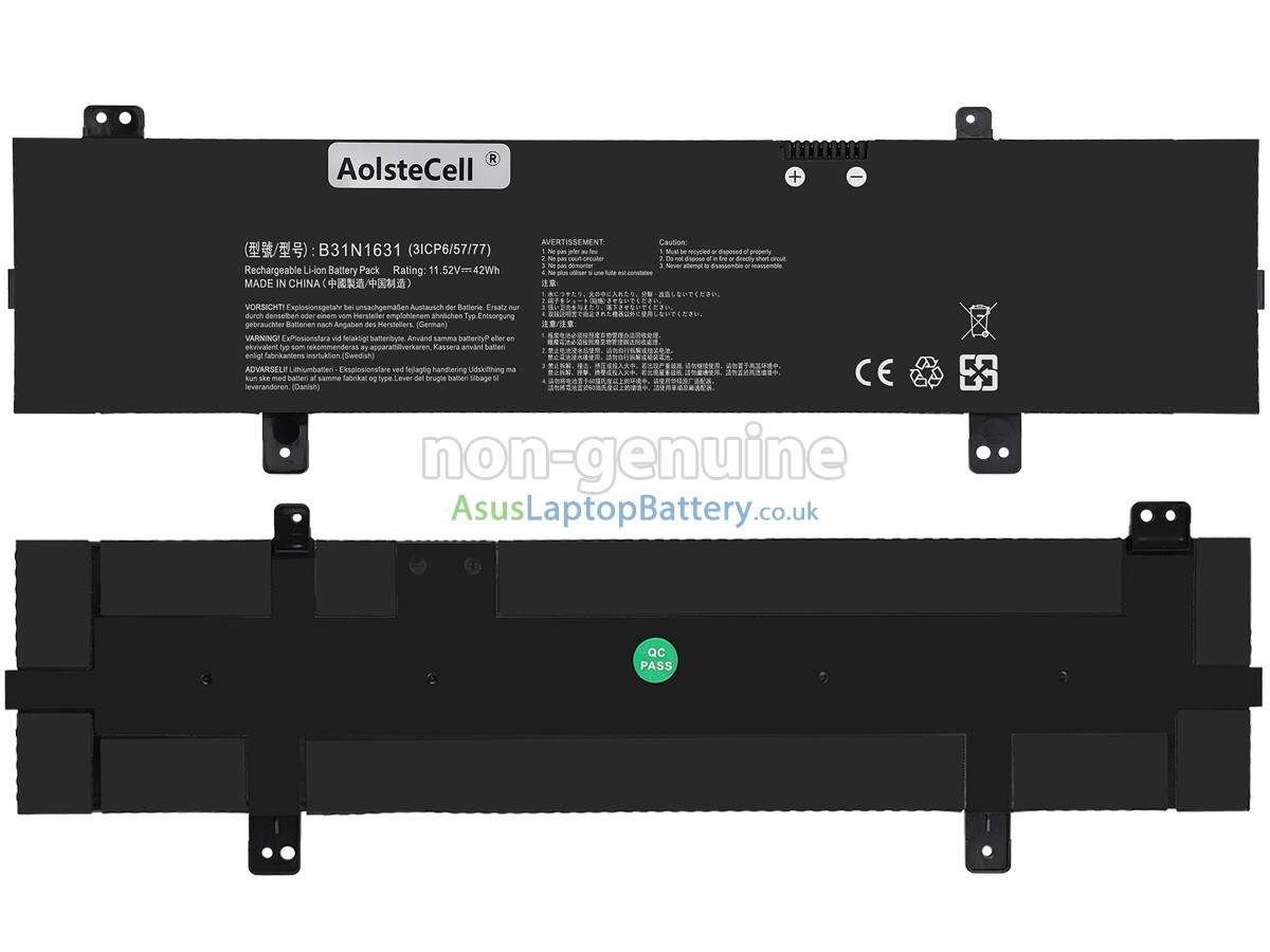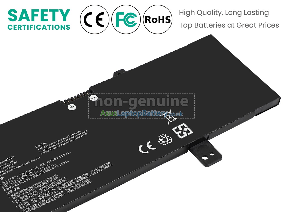 Thank you for purchasing this high-quality replacement Asus VivoBook 15 F505ZA-BQ160T notebook battery from Asuslaptopbattery.co.uk. We have a rigorous testing process to ensure that the products you ordered (like this battery for Asus VivoBook 15 F505ZA-BQ160T laptop) function correctly before they are packaged and shipped to you. Before placing your order, please make sure that your old original battery's part number is listed below and that it is the same shape as our battery image (please see the larger image for details).