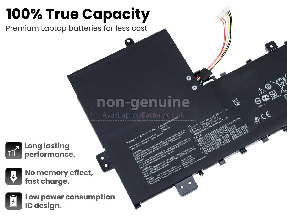 This brand-new replacement battery for Asus VivoBook 17 S712DA-BX330 laptop is made from premium Li-Polymer batteries from Samsung, LG, and Panasonic to ensure optimal performance. This replacement Asus VivoBook 17 S712DA-BX330 battery pack has been specially designed with multiple protection circuits to ensure maximum safety. The battery pack's casing is made of non-flammable and highly durable plastic that is flame retardant to prevent damage when dropped from a low height.