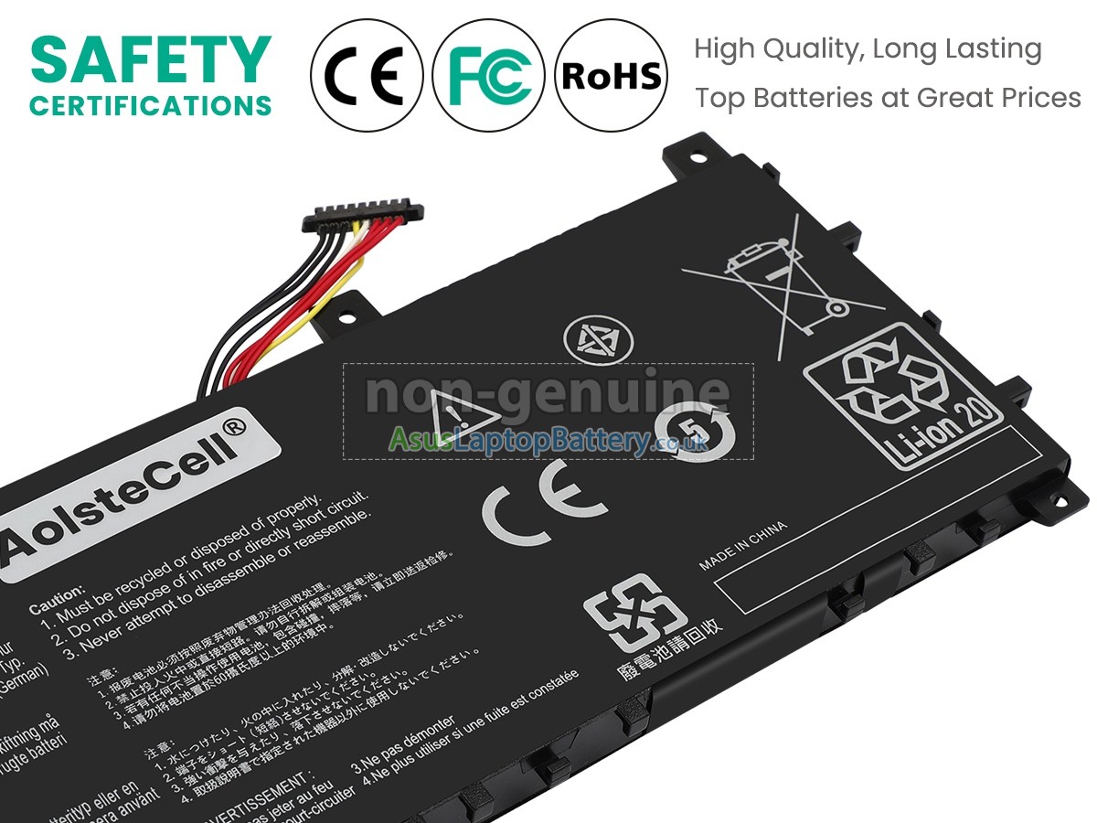 All of our high-quality replacement batteries for Asus VivoBook A451 notebook are tested and proven to match and/or exceed the performance of the original battery and are 100% compatible with the original manufacturer's specifications. Each of our replacement batteries is systematically tested and verified to ensure the safety of your laptop. This battery for Asus VivoBook A451 is backed by a 1-year limited warranty.