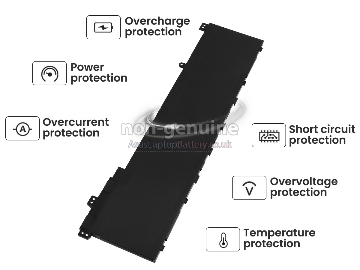 This brand-new replacement battery for Asus VivoBook Pro 16X OLED N7600PC-L2010 laptop is made from premium Li-Polymer batteries from Samsung, LG, and Panasonic to ensure optimal performance. This replacement Asus VivoBook Pro 16X OLED N7600PC-L2010 battery pack has been specially designed with multiple protection circuits to ensure maximum safety. The battery pack's casing is made of non-flammable and highly durable plastic that is flame retardant to prevent damage when dropped from a low height.