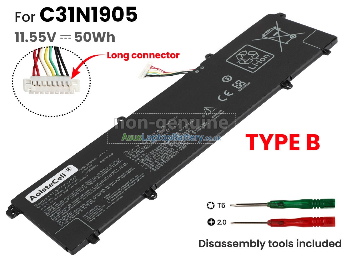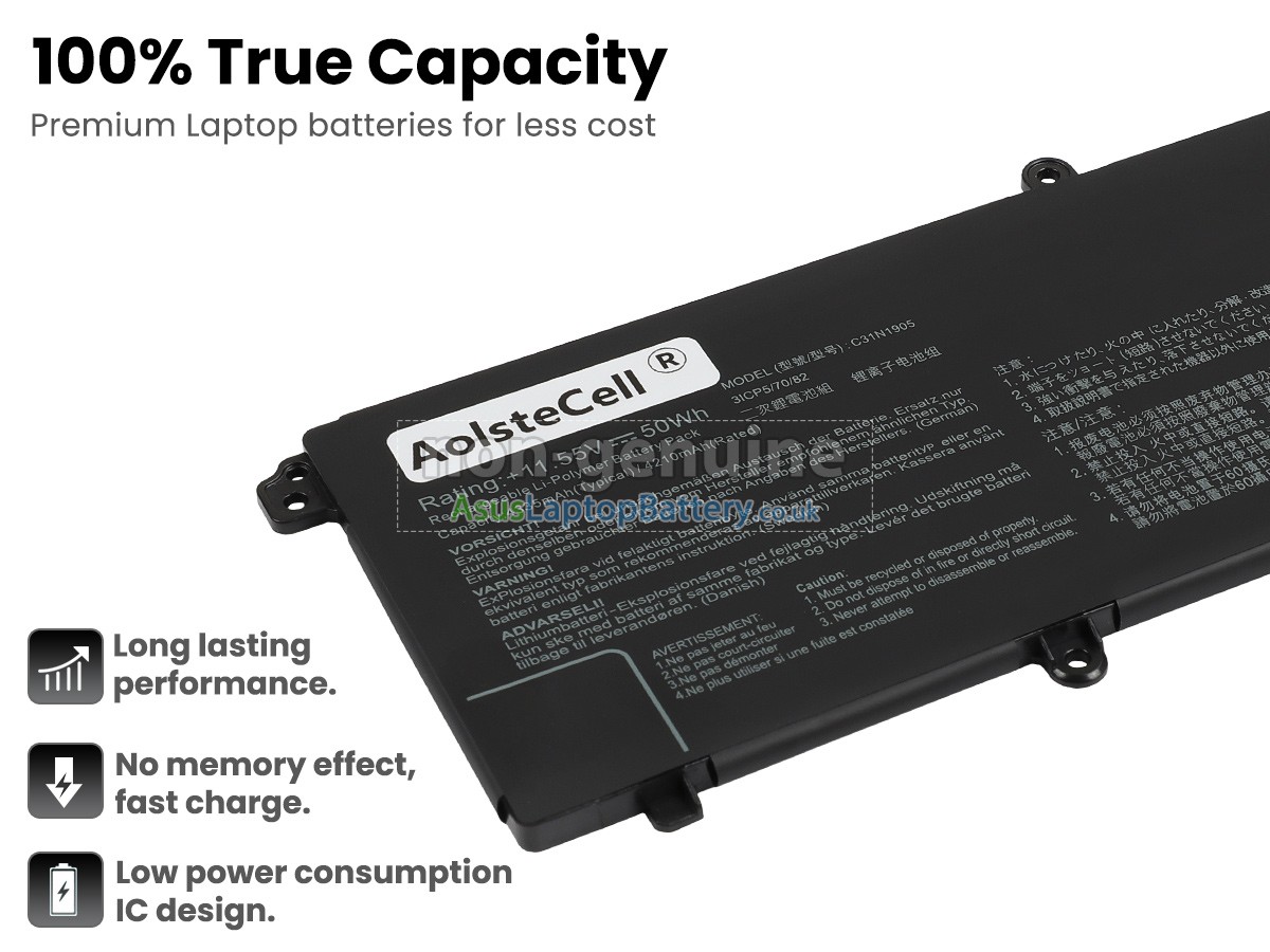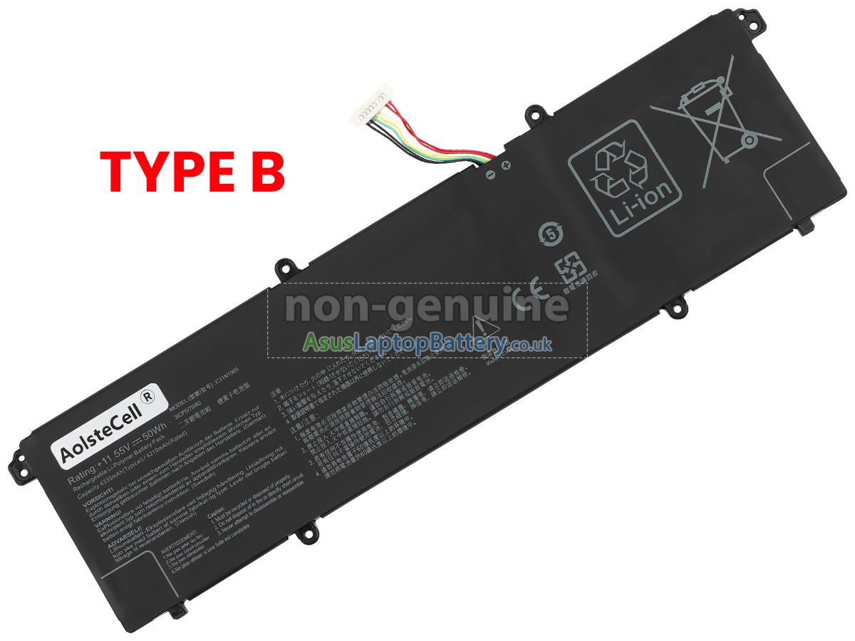 Thank you for purchasing this high-quality replacement Asus VivoBook ULTRA K14 KM413UA-EB703TS notebook battery from Asuslaptopbattery.co.uk. We have a rigorous testing process to ensure that the products you ordered (like this battery for Asus VivoBook ULTRA K14 KM413UA-EB703TS laptop) function correctly before they are packaged and shipped to you. Before placing your order, please make sure that your old original battery's part number is listed below and that it is the same shape as our battery image (please see the larger image for details).