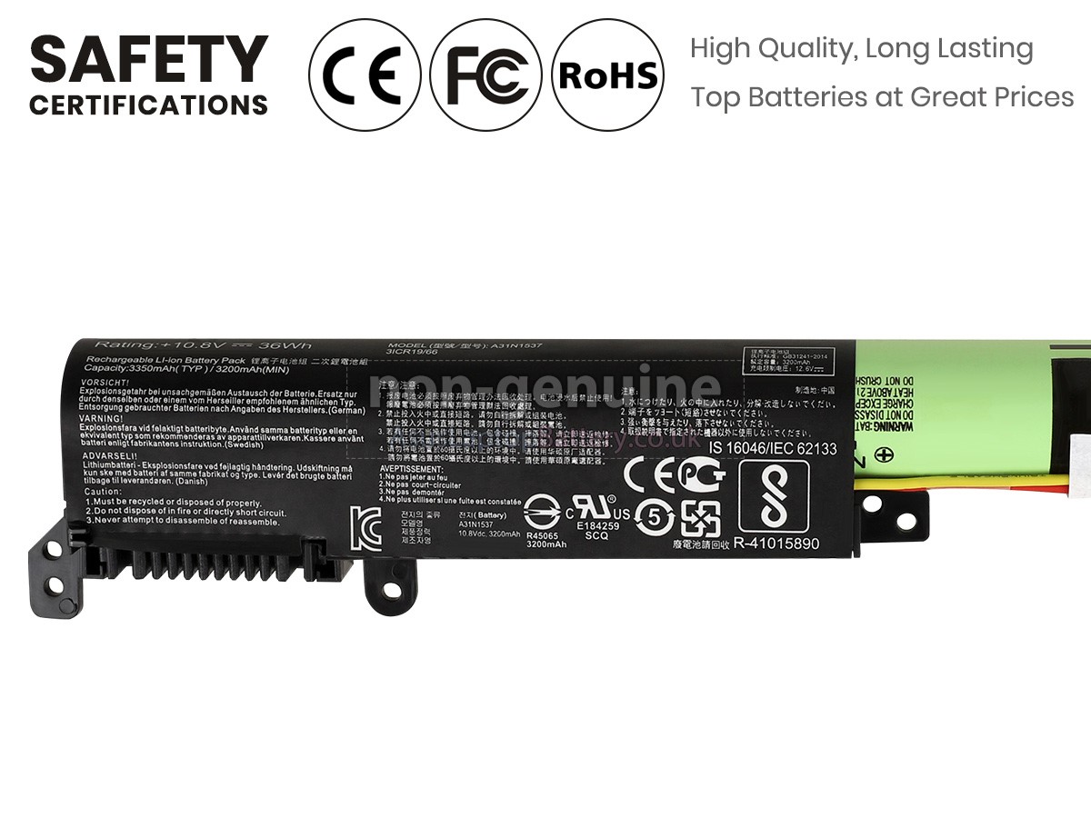 100% OEM compatible, guaranteed to meet the specifications of your original battery (ensuring the same size and high quality). All of our replacement Asus X441SA batteries are internationally certified (CE, UL, ROHS, ISO9001/9002).