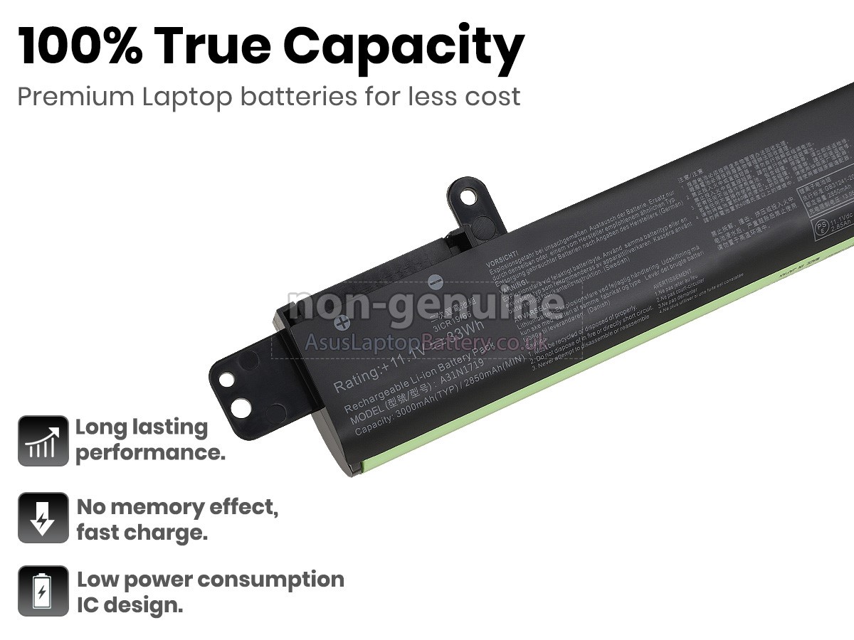 All of our high-quality replacement batteries for Asus X507UB-EJ045 notebook are tested and proven to match and/or exceed the performance of the original battery and are 100% compatible with the original manufacturer's specifications. Each of our replacement batteries is systematically tested and verified to ensure the safety of your laptop. This battery for Asus X507UB-EJ045 is backed by a 1-year limited warranty.