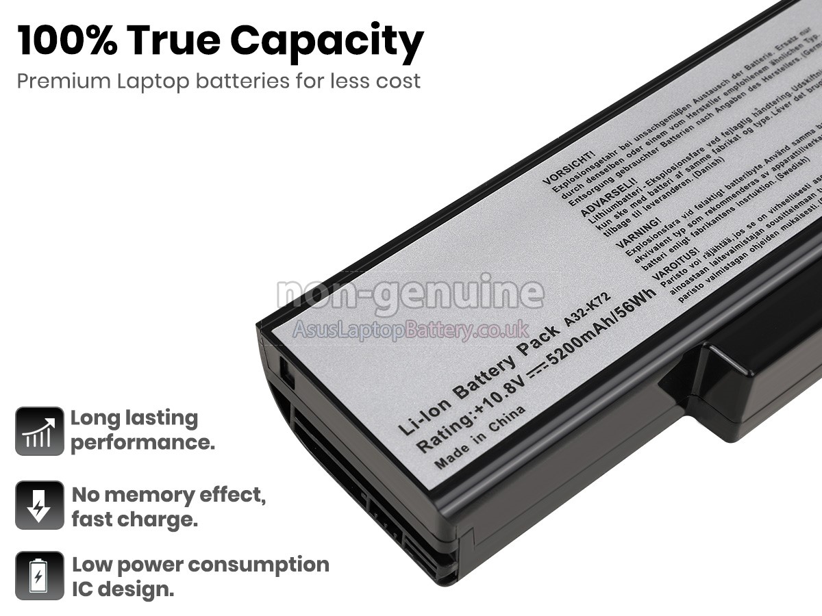 This brand-new replacement battery for Asus X7C laptop is made from premium Li-ion batteries from Samsung, LG, and Panasonic to ensure optimal performance. This replacement Asus X7C battery pack has been specially designed with multiple protection circuits to ensure maximum safety. The battery pack's casing is made of non-flammable and highly durable plastic that is flame retardant to prevent damage when dropped from a low height.