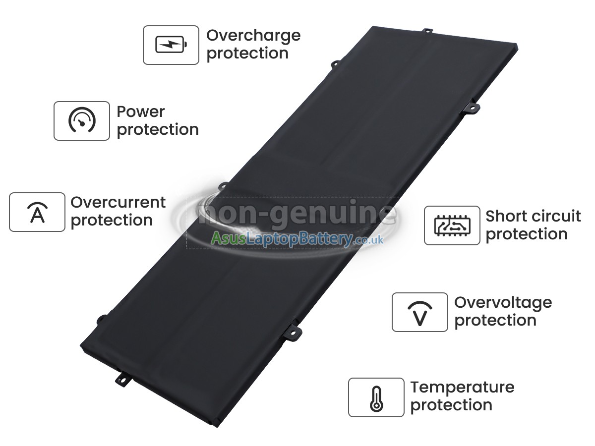 This brand-new replacement battery for Asus ZenBook 14 OLED UX3405MA-TU7161W laptop is made from premium Li-Polymer batteries from Samsung, LG, and Panasonic to ensure optimal performance. This replacement Asus ZenBook 14 OLED UX3405MA-TU7161W battery pack has been specially designed with multiple protection circuits to ensure maximum safety. The battery pack's casing is made of non-flammable and highly durable plastic that is flame retardant to prevent damage when dropped from a low height.