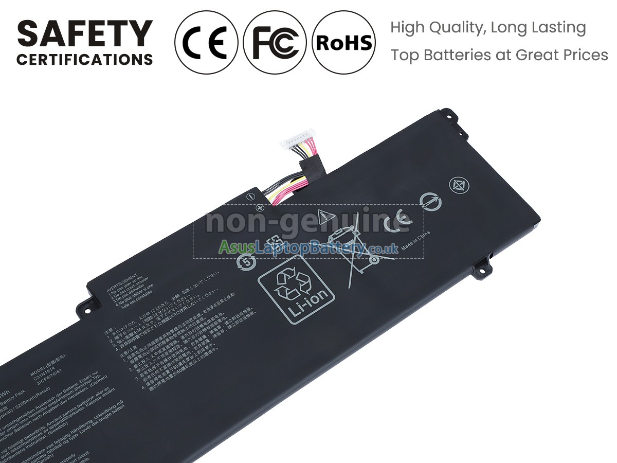 100% OEM compatible, guaranteed to meet the specifications of your original battery (ensuring the same size and high quality). All of our replacement Asus ZenBook 14 UX435EG-AI039T batteries are internationally certified (CE, UL, ROHS, ISO9001/9002).