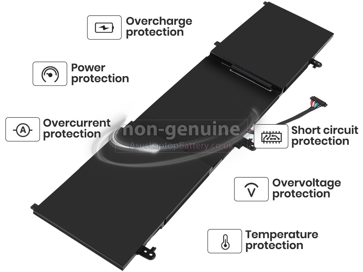 This brand-new replacement battery for Asus ZenBook 15 UX533FD-A9082T laptop is made from premium Li-Polymer batteries from Samsung, LG, and Panasonic to ensure optimal performance. This replacement Asus ZenBook 15 UX533FD-A9082T battery pack has been specially designed with multiple protection circuits to ensure maximum safety. The battery pack's casing is made of non-flammable and highly durable plastic that is flame retardant to prevent damage when dropped from a low height.