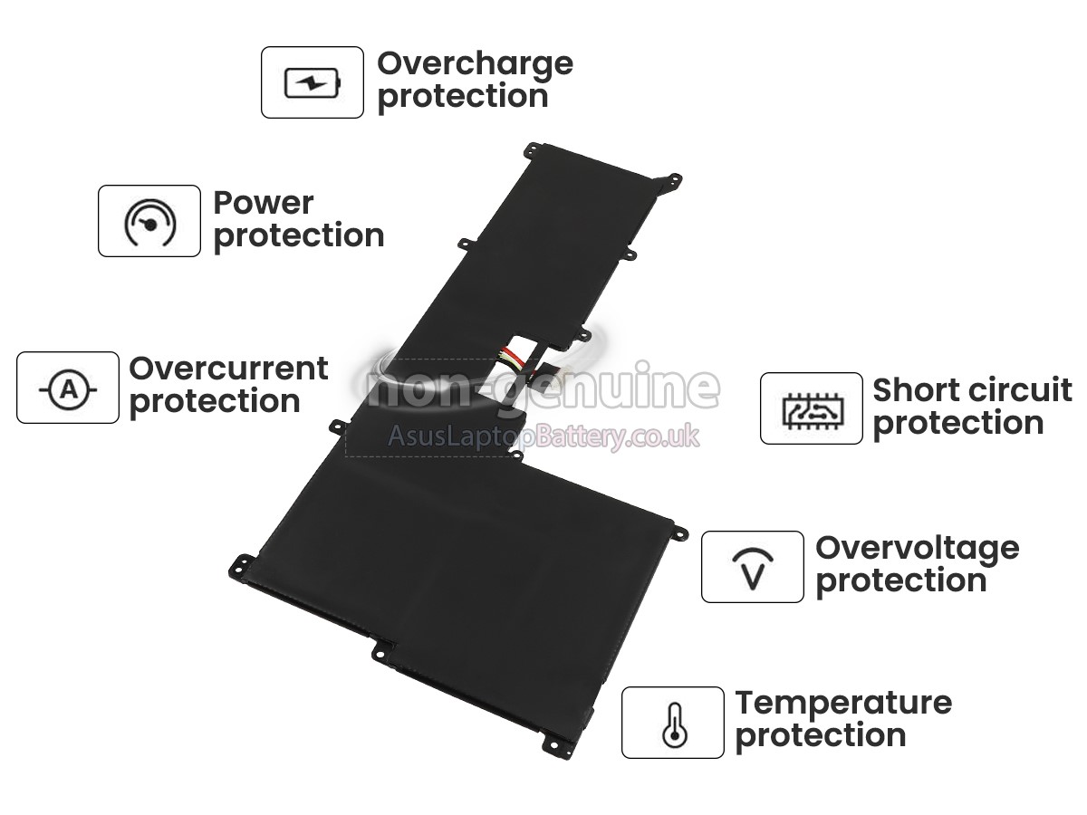 This brand-new replacement battery for Asus ZenBook 3 DELUXE UX490UA-BE082T laptop is made from premium Li-Polymer batteries from Samsung, LG, and Panasonic to ensure optimal performance. This replacement Asus ZenBook 3 DELUXE UX490UA-BE082T battery pack has been specially designed with multiple protection circuits to ensure maximum safety. The battery pack's casing is made of non-flammable and highly durable plastic that is flame retardant to prevent damage when dropped from a low height.
