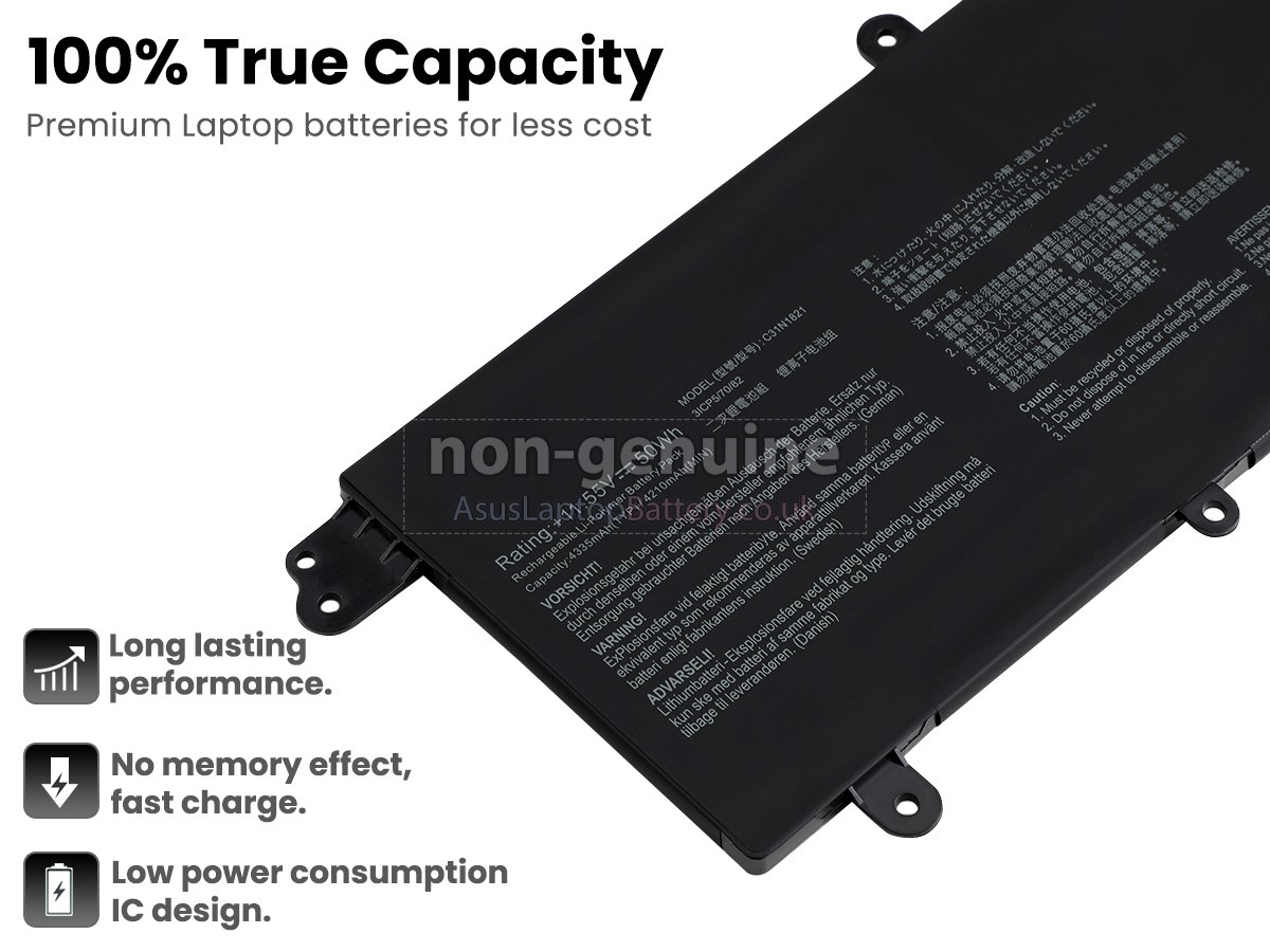 This brand-new replacement battery for Asus ZenBook S13 UX392FN-XS71 laptop is made from premium Li-Polymer batteries from Samsung, LG, and Panasonic to ensure optimal performance. This replacement Asus ZenBook S13 UX392FN-XS71 battery pack has been specially designed with multiple protection circuits to ensure maximum safety. The battery pack's casing is made of non-flammable and highly durable plastic that is flame retardant to prevent damage when dropped from a low height.