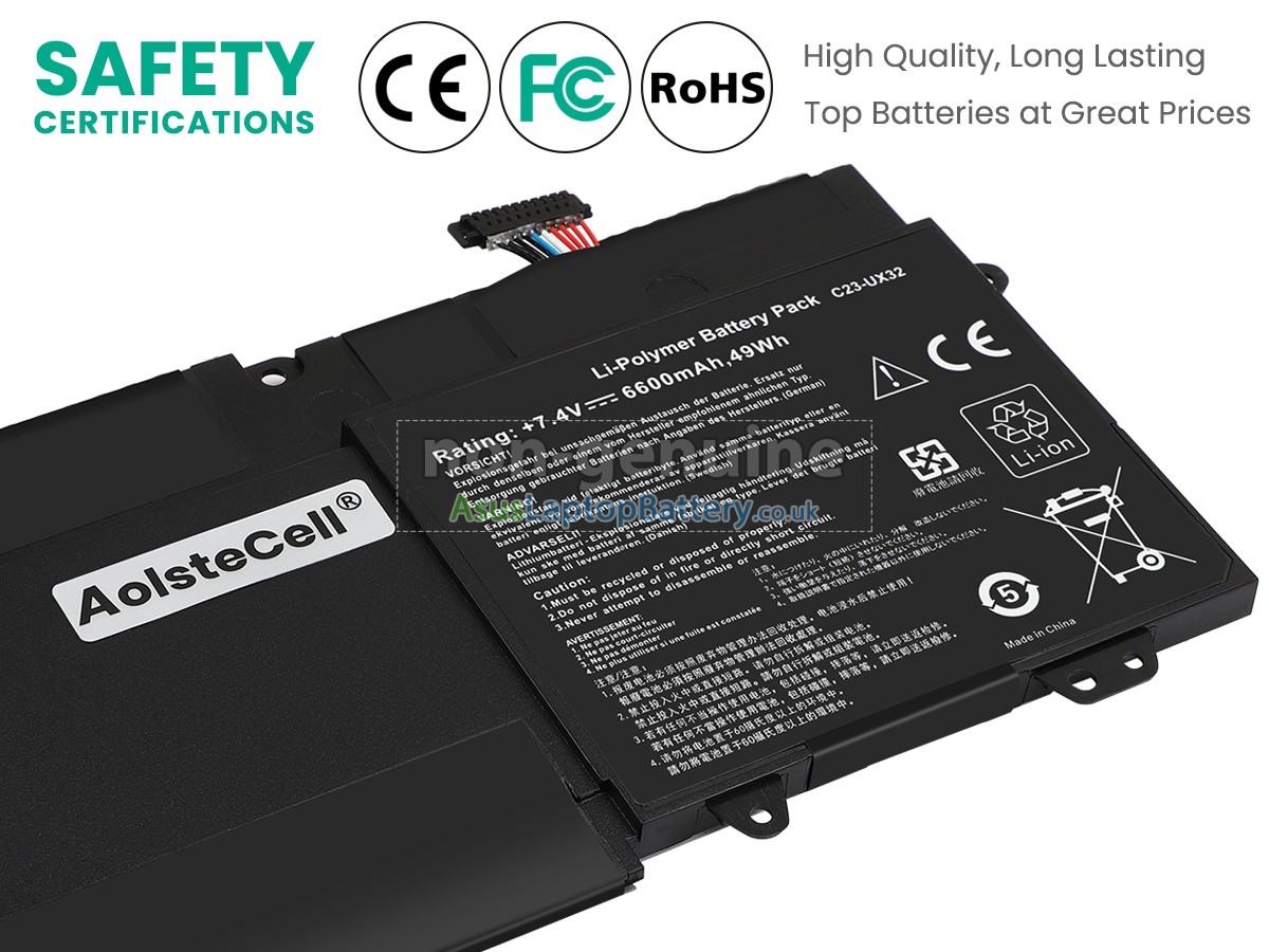 This brand-new replacement battery for Asus ZenBook UX32VD-DB71 laptop is made from premium Li-Polymer batteries from Samsung, LG, and Panasonic to ensure optimal performance. This replacement Asus ZenBook UX32VD-DB71 battery pack has been specially designed with multiple protection circuits to ensure maximum safety. The battery pack's casing is made of non-flammable and highly durable plastic that is flame retardant to prevent damage when dropped from a low height.