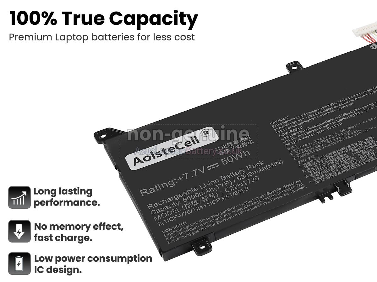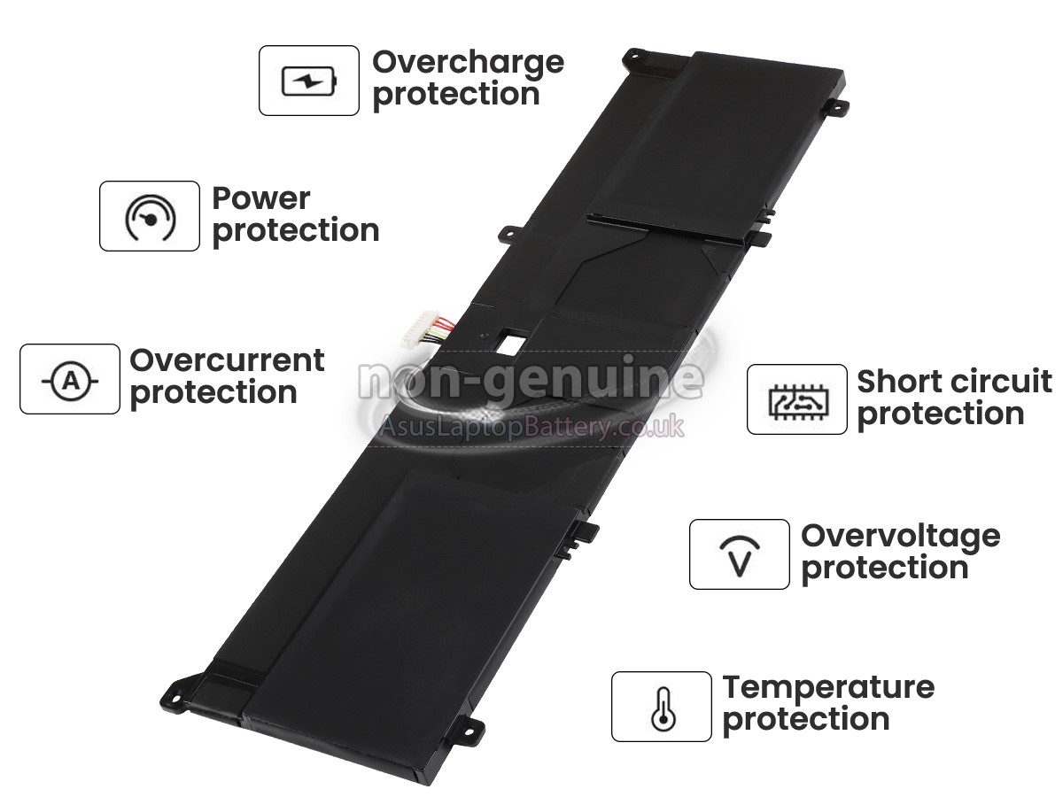 This brand-new replacement battery for Asus ZenBook UX391FA-AH010T laptop is made from premium Li-Polymer batteries from Samsung, LG, and Panasonic to ensure optimal performance. This replacement Asus ZenBook UX391FA-AH010T battery pack has been specially designed with multiple protection circuits to ensure maximum safety. The battery pack's casing is made of non-flammable and highly durable plastic that is flame retardant to prevent damage when dropped from a low height.