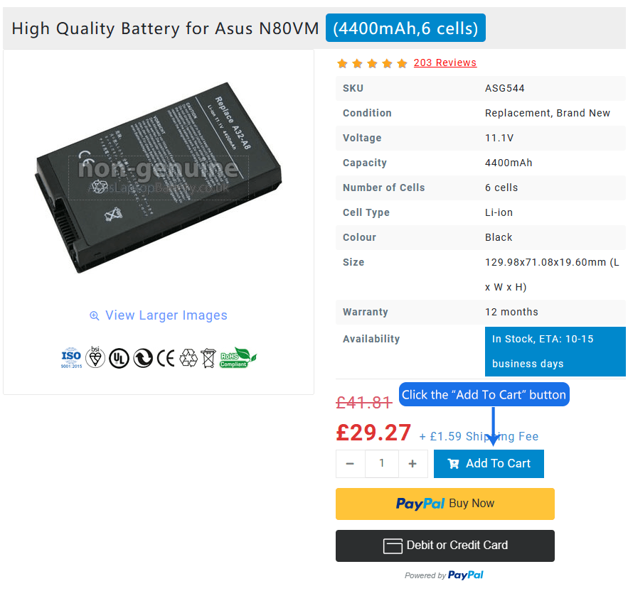 To place an order from asuslaptopbattery.co.uk is easy. We have provided here with a guideline to assist you on how to place an order with us.